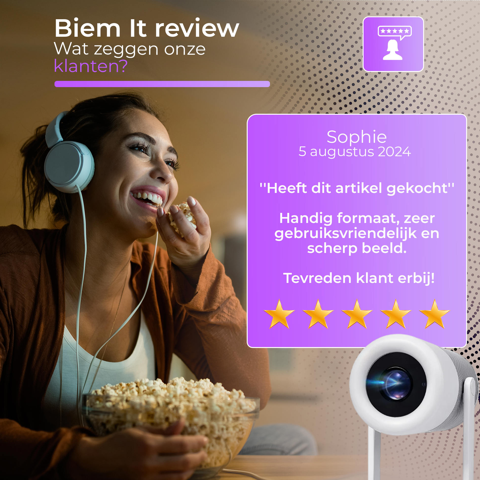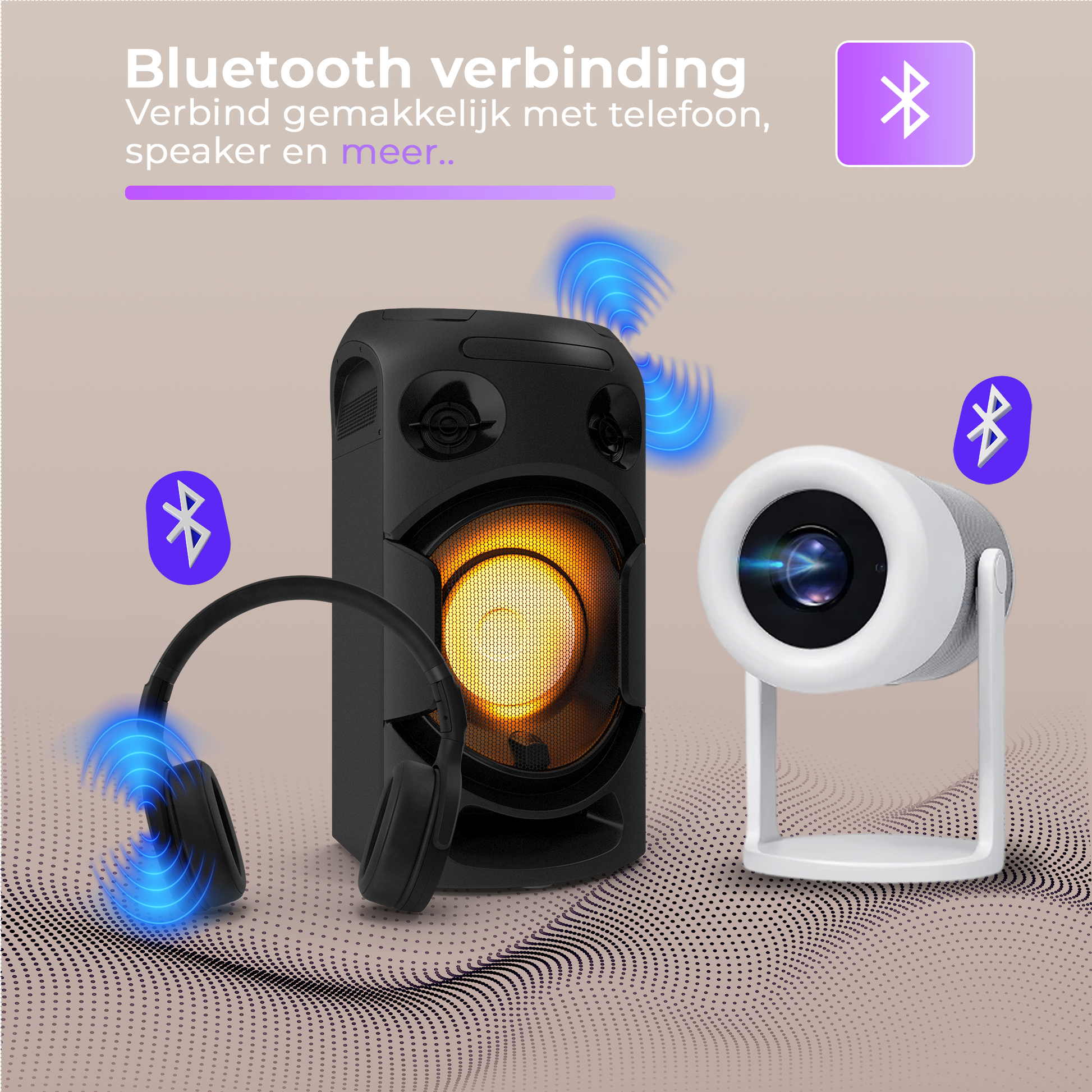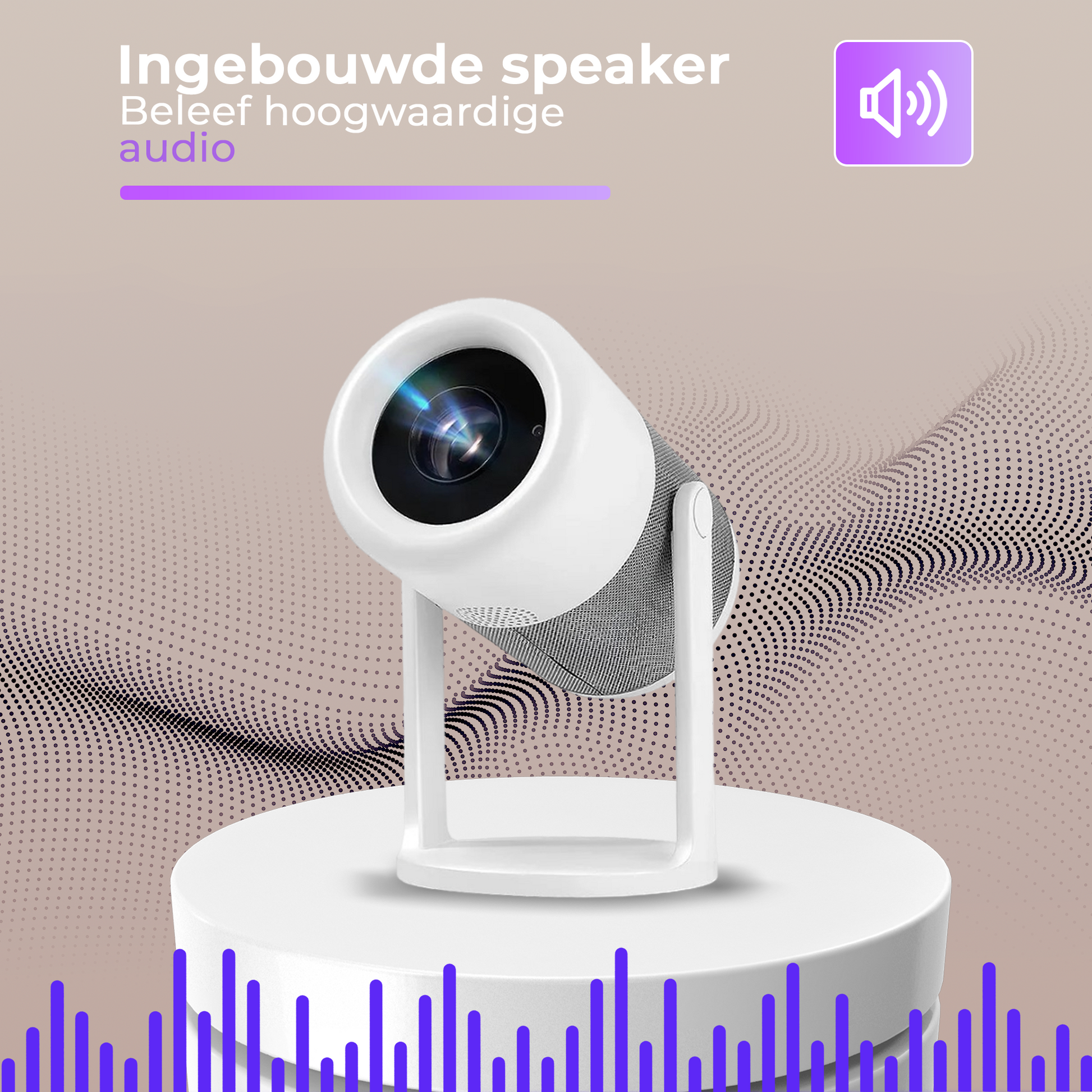 Ja, met het ingebouwde audiosysteem aan de voorzijde ben je verzekerd van helder geluid direct vanuit de projector. Voor een nog meeslependere audio-ervaring kun je ervoor kiezen om een Bluetooth-speaker aan te sluiten.