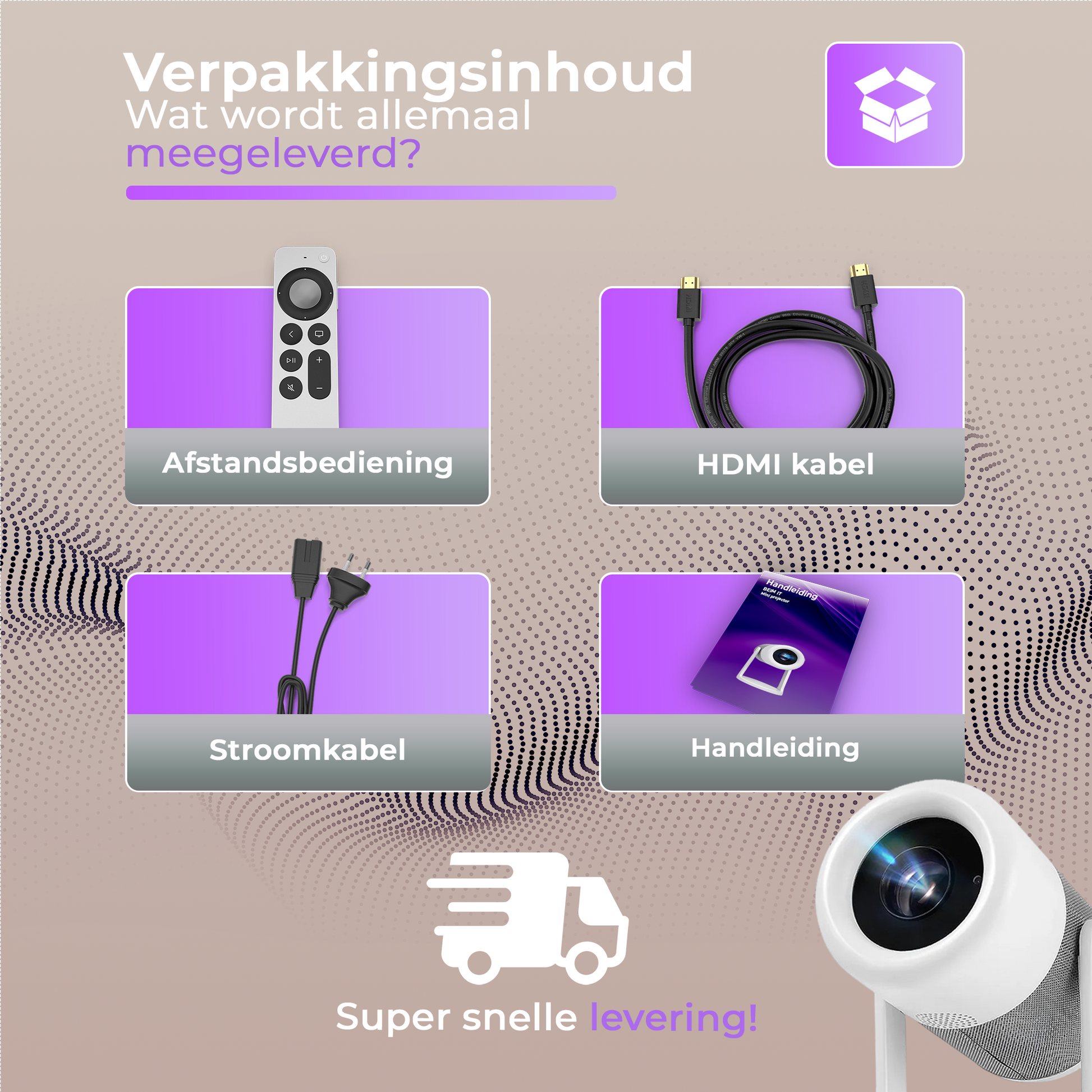 Uiteraard! De projector is voorzien van een HDMI-poort. Verbind je gameconsole of laptop gemakkelijk met een HDMI kabel.