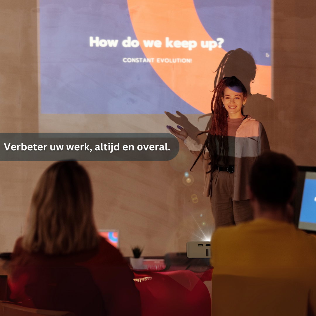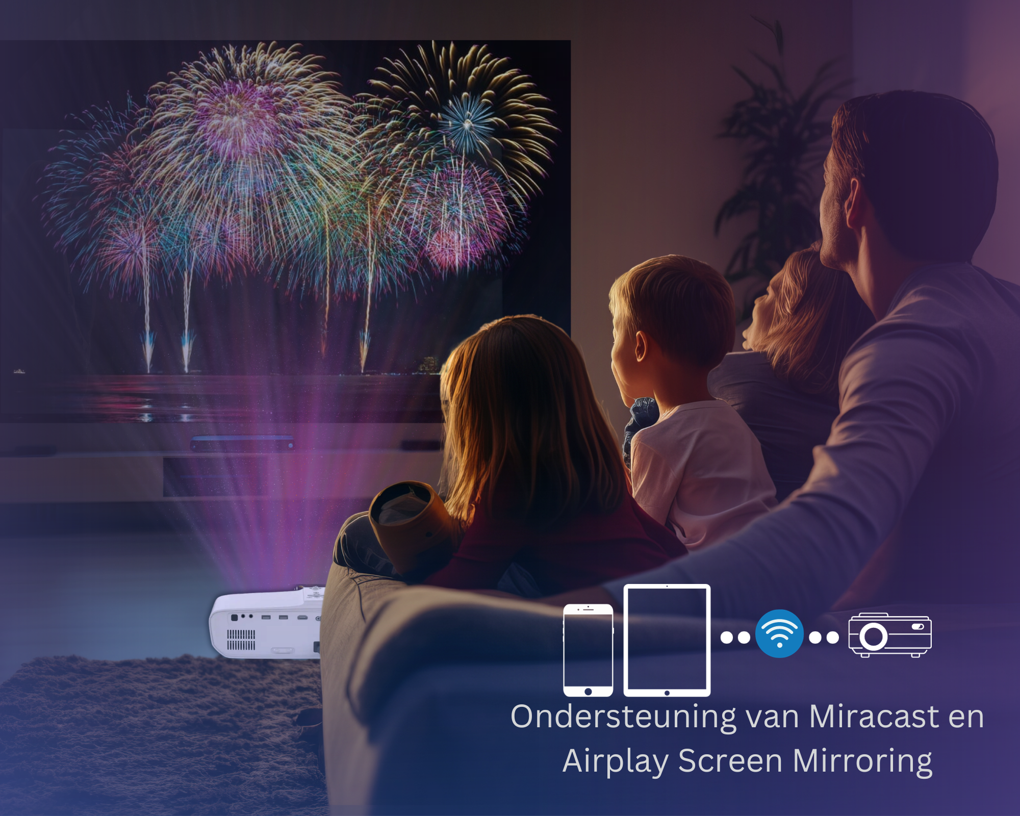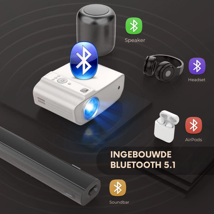 Uiteraard! De projector is voorzien van een HDMI-poort. Verbind je gameconsole of laptop gemakkelijk met een HDMI kabel.